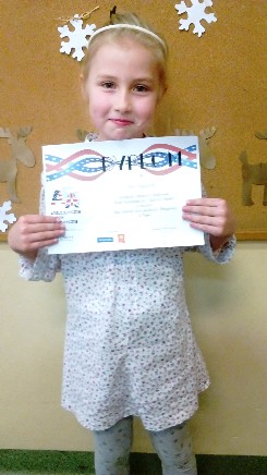 21.12.2015. Nasza uczennica Maja Szychowicz z klasy 1 b wygrała konkurs plastyczny dla klas I-III pt.: "KRAJE ANGLOJĘZYCZNE - KULTURA I SZTUKA", organizowany przez PWSZ w Nysie w ramach Dnia Kultury Brytyjskiej i Amerykańskiej w PWSZ w Nysie.